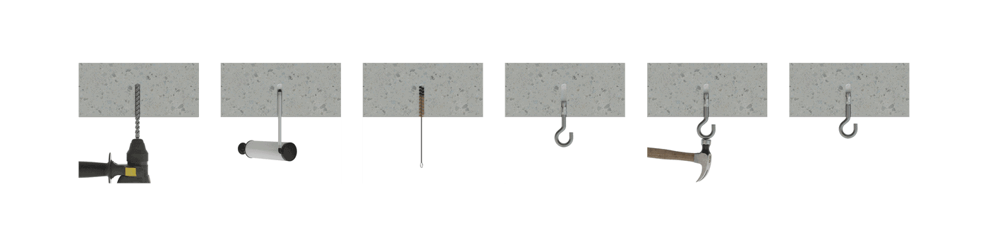 Nail anchor for non-structural applications in concrete. ETE approved. Hook bolt. Zinc-plated shaft. ATLANTIS C3-L clip